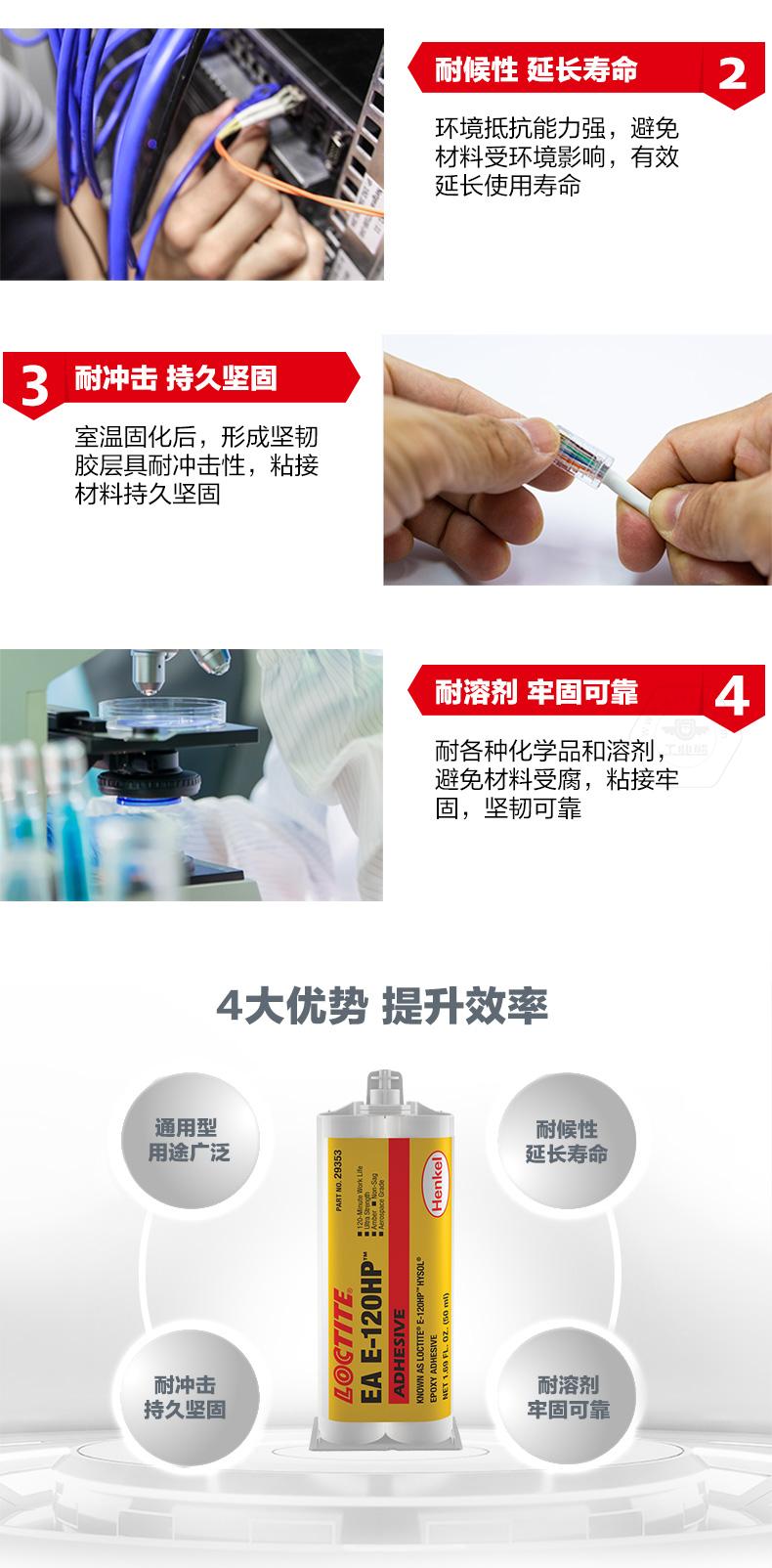 乐泰EA E-120HP双组份环氧粘合剂是一款双组份、通用型、具有高抗剥离性的工业级环氧树脂胶粘剂。乐泰EA E-120HP双组份环氧粘合剂具备耐候性、耐冲击和耐溶剂性能,可用于铝、钢和其他金属,以及各种塑料和陶瓷的粘接。乐泰EA E-120HP双组份环氧粘合剂适合需要高冲击力和高剥离强度的低应力、一般工业应用。